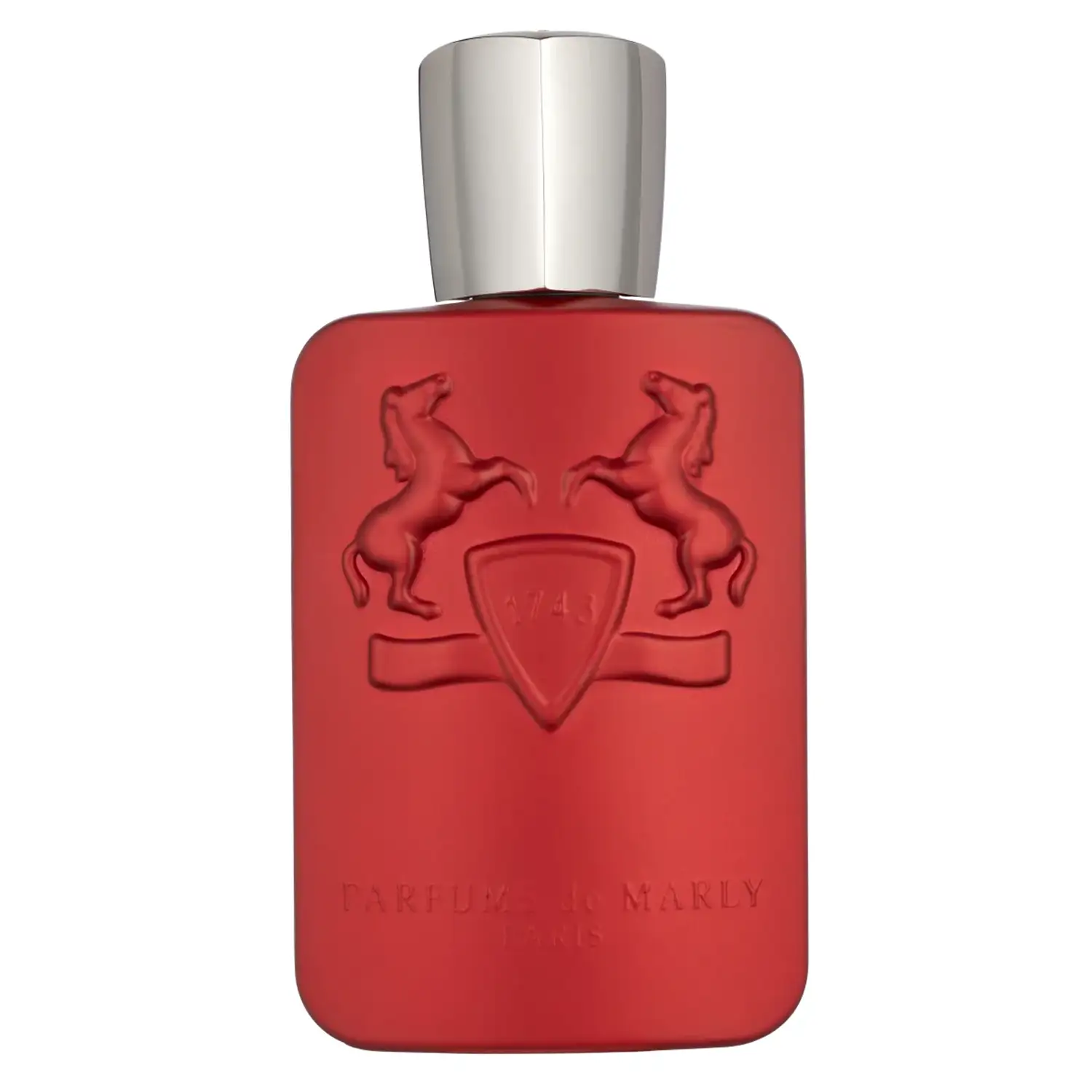بطری ادکلن پارفومز دی مارلی کالان با رنگ قرمز تیره و طراحی کلاسیک امضای برند پارفومز دی مارلی، حس قدرت و جذابیت را منتقل میکند. لوگوی برجسته اسبهای معروف این برند روی شیشه و درب فلزی براق، جلوهای لوکس و متفاوت به این عطر داده است.